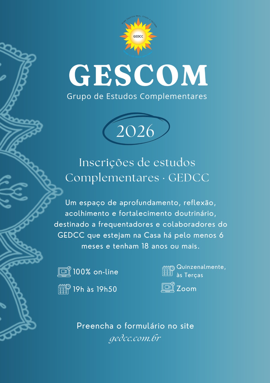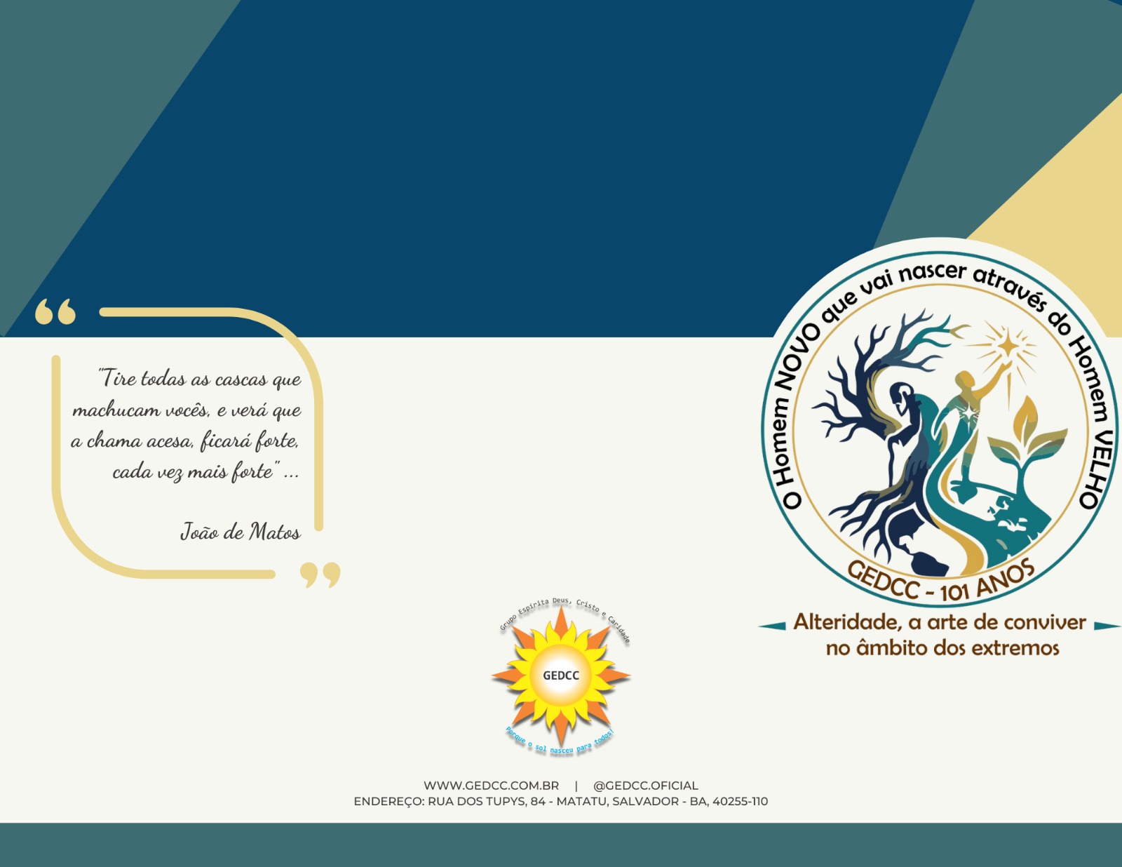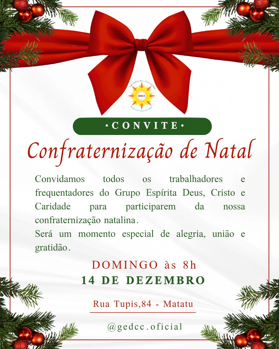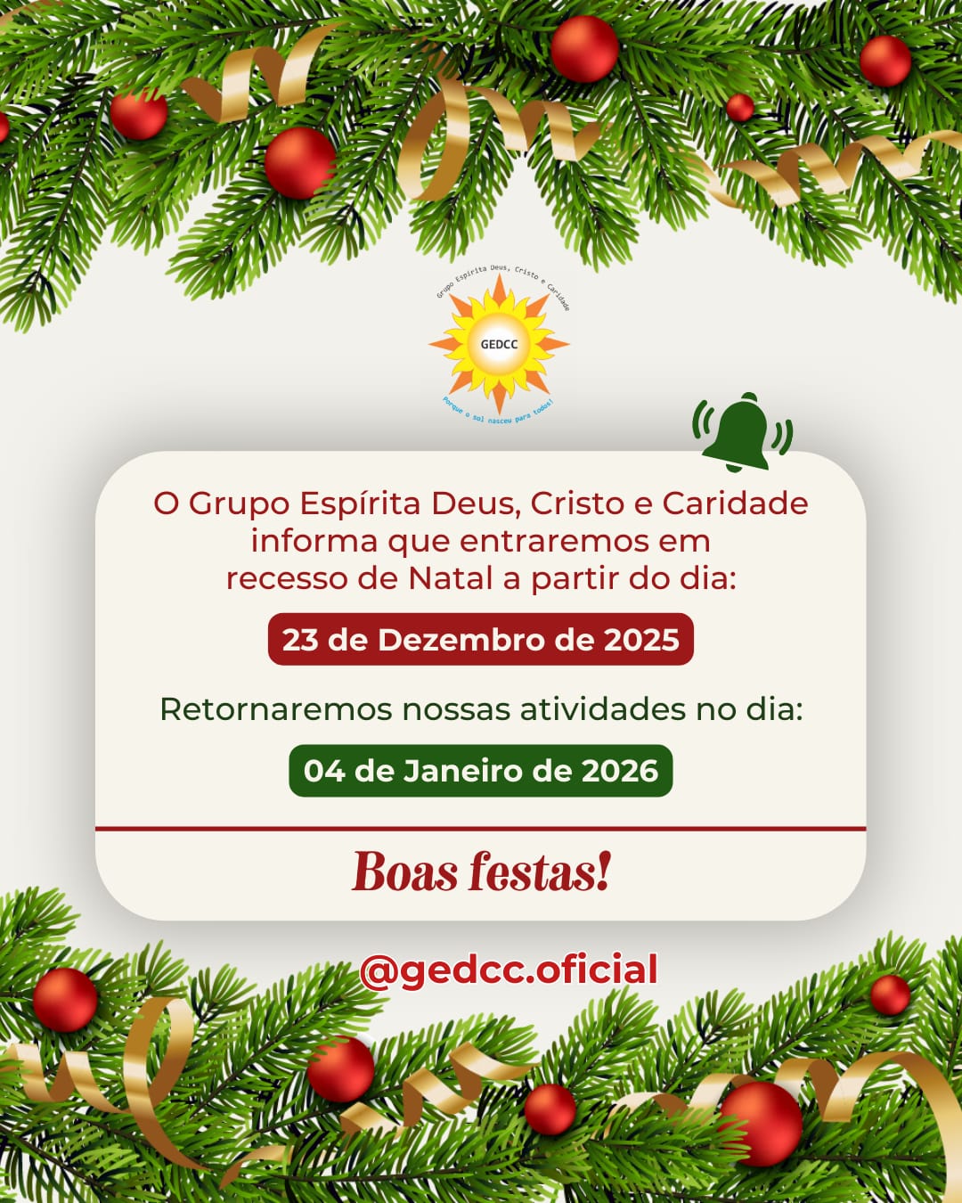 O Grupo Espírita Deus, Cristo e Caridade – GEDCC é uma instituição espírita criada no dia 08 de abril do ano de 1925. Sob a coordenação espiritual do Irmão João de Matos, sua missão de “Servir de ponto de iluminação, núcleo de reforma cristã, para assistir e educar com amor, alicerçado na Doutrina Espírita, auxiliando a todos, promovendo o autoconhecimento objetivando a evolução espiritual”. A finalidade básica do GEDCC é a sua promoção em um ponto de renovação social e humana, incentivando o desenvolvimento de valores espirituais e éticos capazes de gerar a transformação espiritual dos seus trabalhadores e frequentadores, sob a égide do seu coordenador espiritual, João de Matos, e de toda a sua equipe de abnegados e incansáveis benfeitores espirituais. O capital humano atuante é composto de trabalhadores voluntários, treinados para colaborarem na execução de tarefas de suas escolhas e aptidões, observando-se os critérios previamente estabelecidos para o exercício daquela atividade.