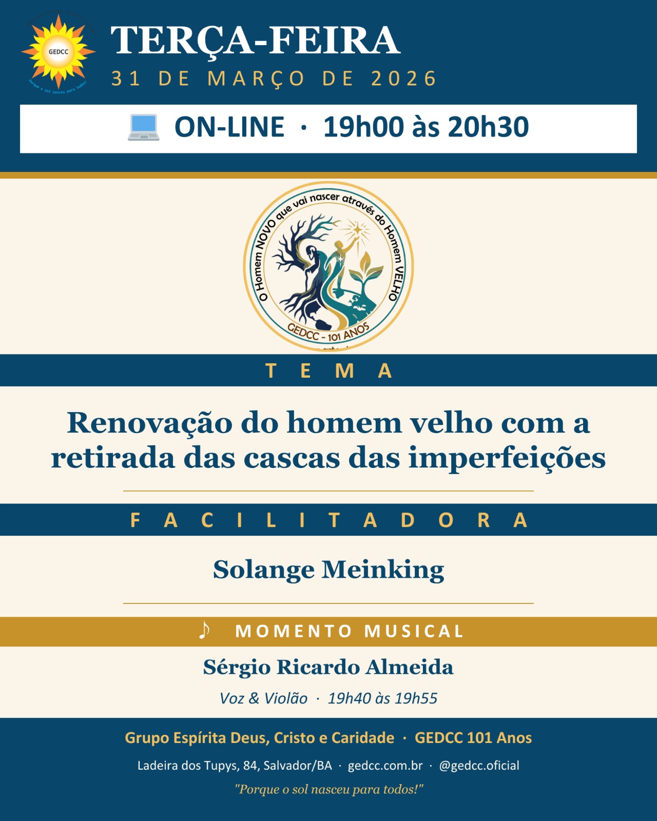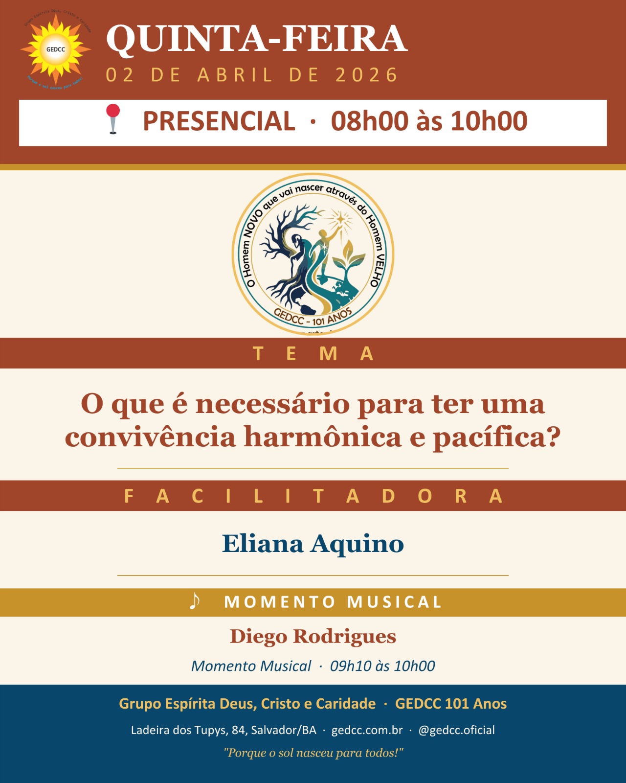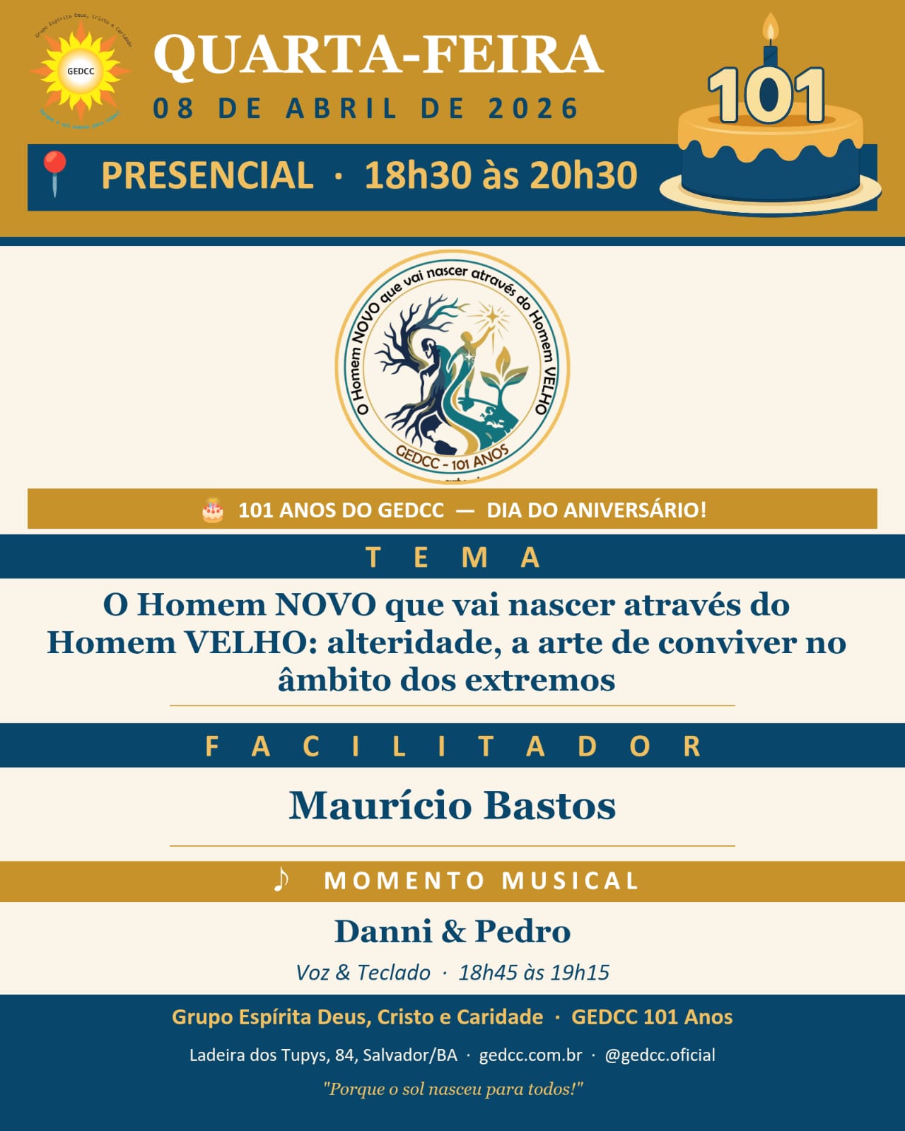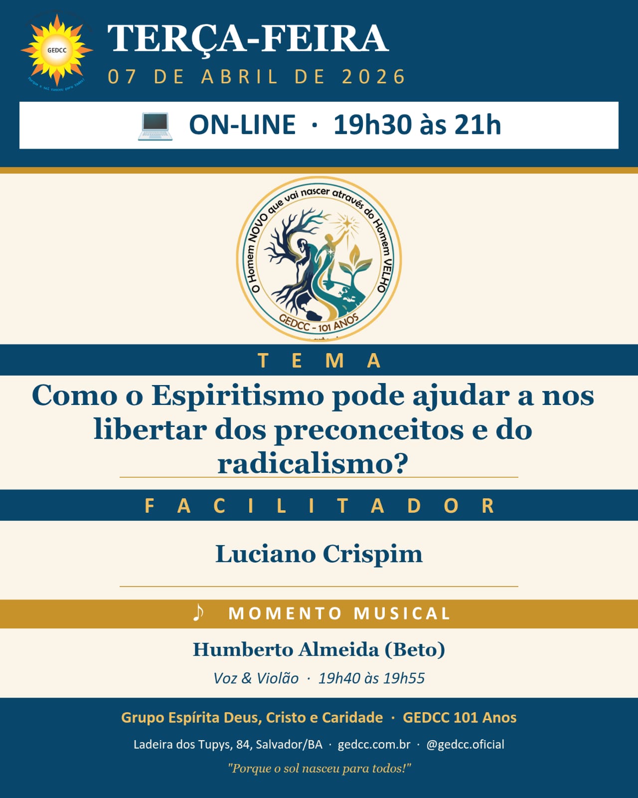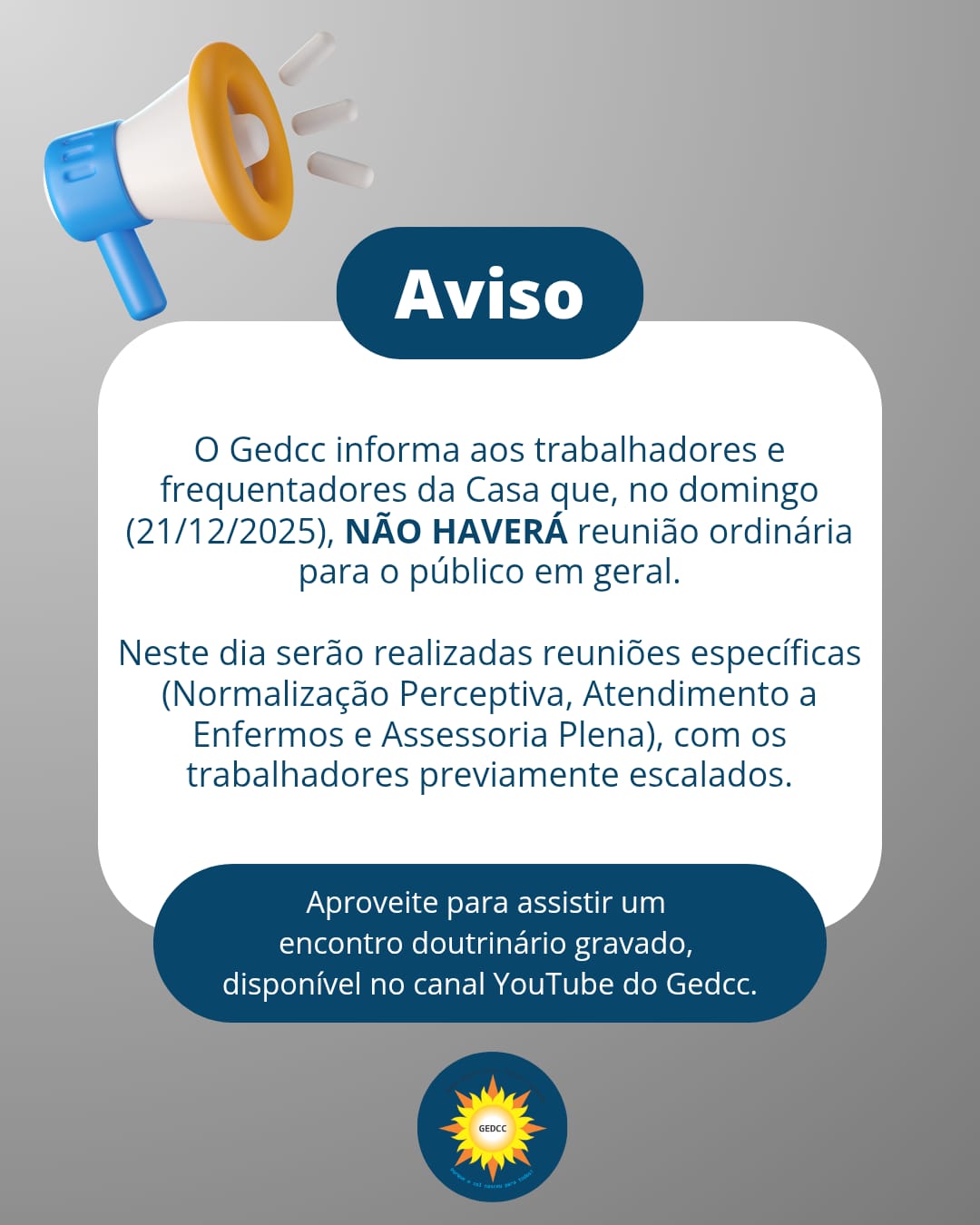 O Grupo Espírita Deus, Cristo e Caridade – GEDCC é uma instituição espírita criada no dia 08 de abril do ano de 1925. Sob a coordenação espiritual do Irmão João de Matos, sua missão de “Servir de ponto de iluminação, núcleo de reforma cristã, para assistir e educar com amor, alicerçado na Doutrina Espírita, auxiliando a todos, promovendo o autoconhecimento objetivando a evolução espiritual”. A finalidade básica do GEDCC é a sua promoção em um ponto de renovação social e humana, incentivando o desenvolvimento de valores espirituais e éticos capazes de gerar a transformação espiritual dos seus trabalhadores e frequentadores, sob a égide do seu coordenador espiritual, João de Matos, e de toda a sua equipe de abnegados e incansáveis benfeitores espirituais. O capital humano atuante é composto de trabalhadores voluntários, treinados para colaborarem na execução de tarefas de suas escolhas e aptidões, observando-se os critérios previamente estabelecidos para o exercício daquela atividade.